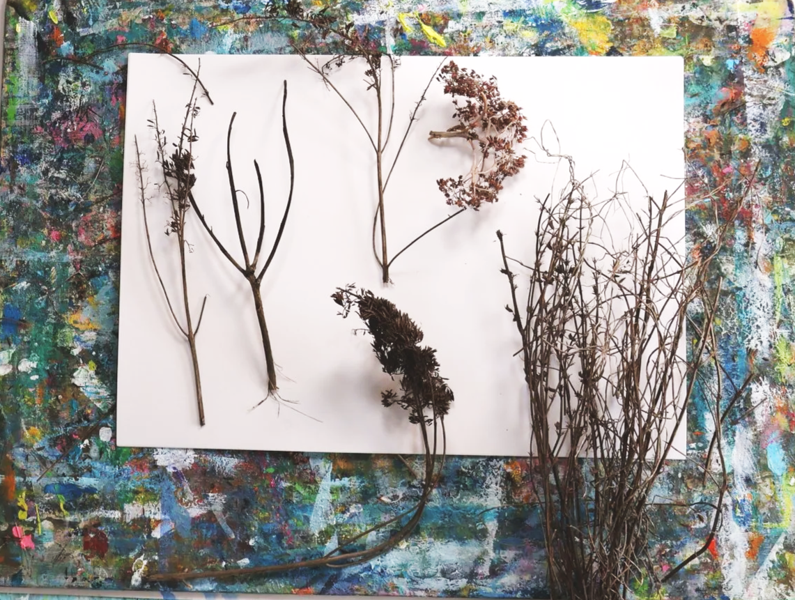 When I visited the allotment, I brought home more than just photos and colour inspiration. I gathered dried twigs, grasses and seed heads without knowing what I would do with them.