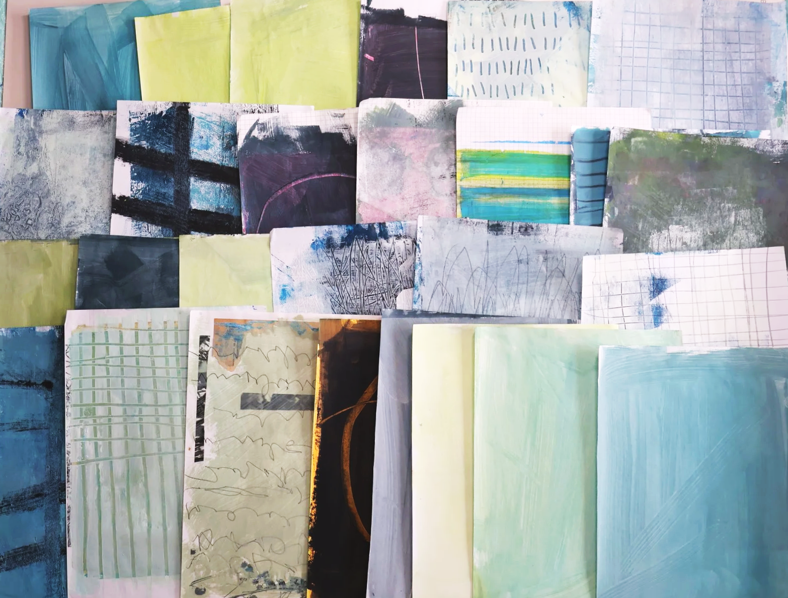 When I come to use them in collage later, I’ll have a mix. Some quieter pieces, some energetic ones, but all from the same base palette. They will naturally work together.